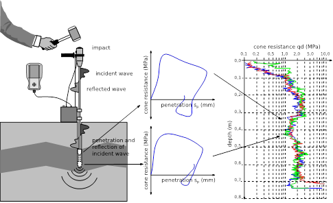 • Mesurer, pour chaque impact, les 5 principaux paramètres du sol, le module d’élasticité, la résistance en pointe dynamique et pseudo-statique, la vitesse d’ondes de compression et l’amortissement du sol.